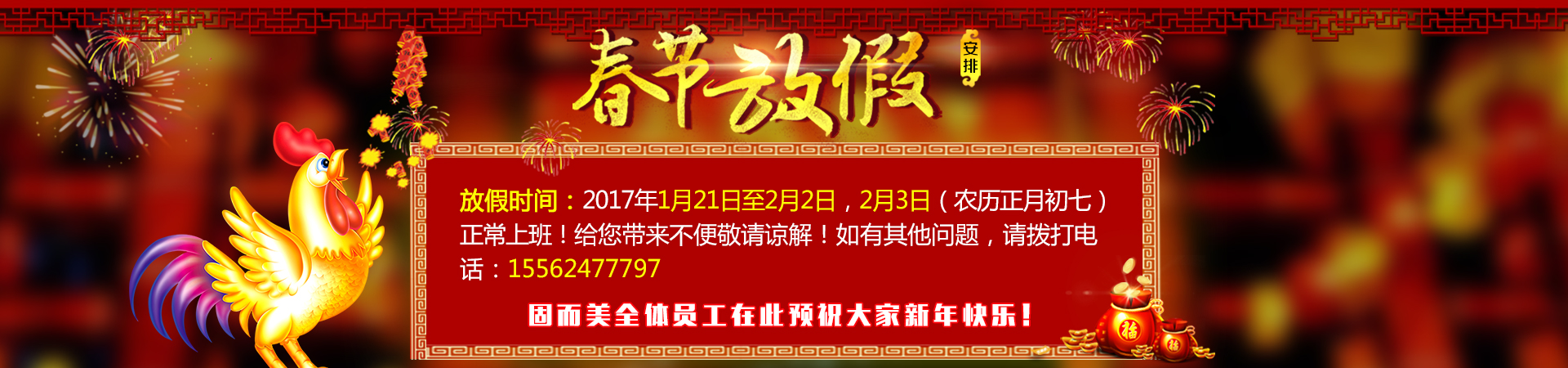 固而美放假時(shí)間為:2017年1月21日至2月2日,2月3日(農(nóng)歷正月初七)正常上班!給您帶來不便敬請諒解!如有其他問題,請撥打電話15562477797